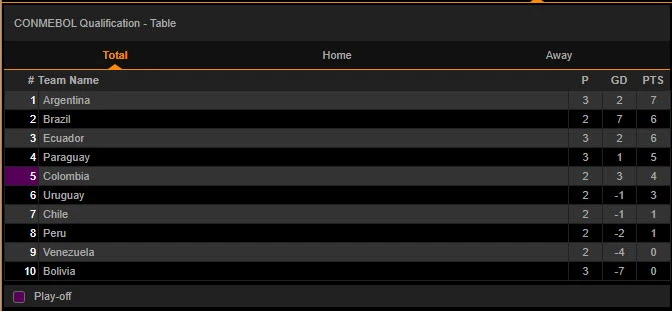 Trận hòa này vừa đủ giúp Argentina vượt mặt Brazil lên ngôi đầu bảng với 7 điểm sau 3 trận. Tuy nhiên, Argentina cũng không hề vui bởi Brazil vẫn còn 1 trận chưa đấu và chỉ thua Argentina đúng 1 điểm.