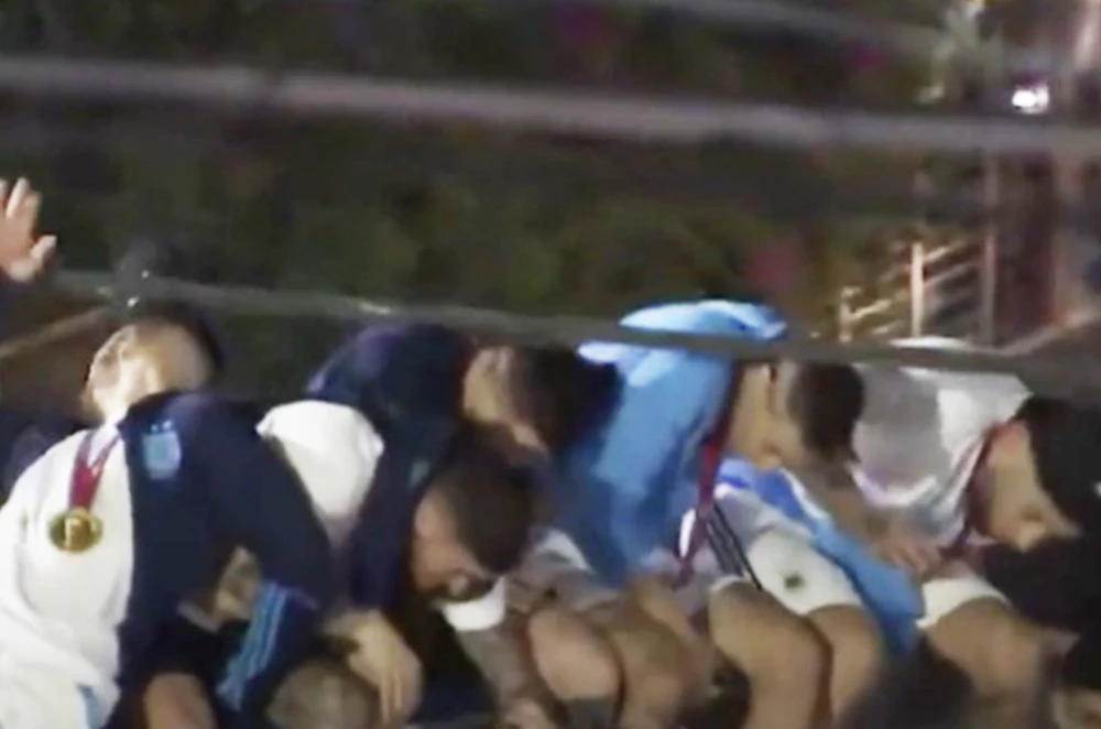 Chiếc xe buýt đi qua một dây cáp trên cao và suýt vướng vào dàn sao của tuyển Argentina. Các cầu thủ Argentina đã phải cúi người xuống tránh va vào dây cáp có thể khiến họ rớt từ xe buýt xuống đường. Hình ảnh cho thấy Messi phải cúi sát đầu xuống để né dây cáp, trong khi chiếc mũ Paredes đang đội đã bị rớt ra trong vụ việc này. Điều đó cho thấy các cầu thủ Argentina đã thoát khỏi một tai nạn nghiêm trọng trong gang tấc.