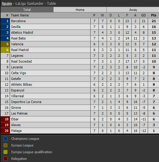 Đây là chiến thắng thứ 7 liên tiếp ở La Liga của Barcelona sau 7 vòng đấu. Trận thắng này giúp Barcelona tiếp tục củng cố vững chắc ngôi đầu bảng với 5 điểm cách biệt so với đội xếp sau Sevilla.
