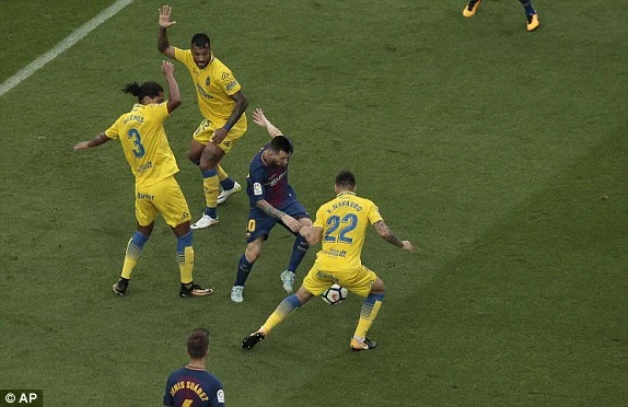 Messi trong vòng vây của cầu thủ Las Palmas.
