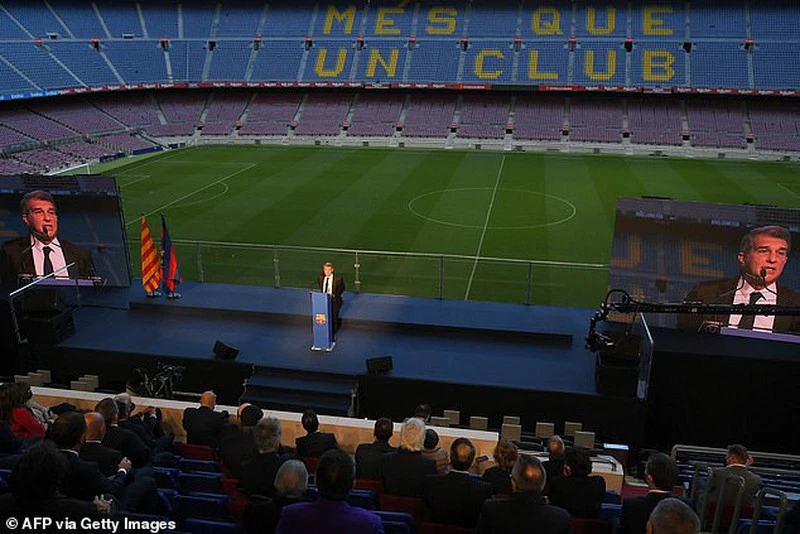 Laporta phát biểu trong lễ nhậm chức chủ tịch Barca. ẢNH: GETTY