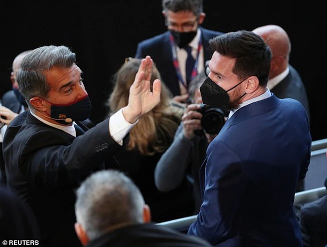 Laporta và Messi trong buổi lễ nhậm chức chủ tịch Barcelona. ẢNH: REUTERS