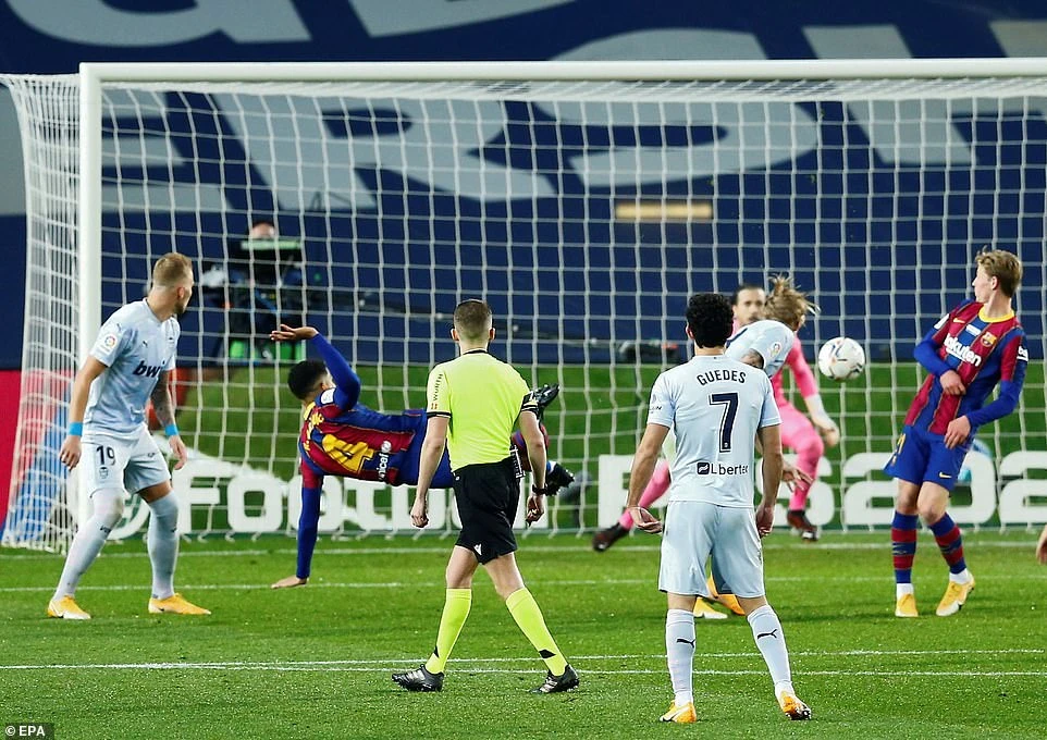 Bước sang hiệp hai, Valencia có ngay cơ hội cực tốt ghi bàn thứ hai nhưng Denis Cheryshev sửa bóng trống trải ra ngoài. Ngay lập tức đội khách phải trả giá, phút 52, Araujo tung người bắt volley tuyệt đẹp đưa bóng đi vào lưới ghi bàn giúp Barca lần đầu vượt lên dẫn 2-1.