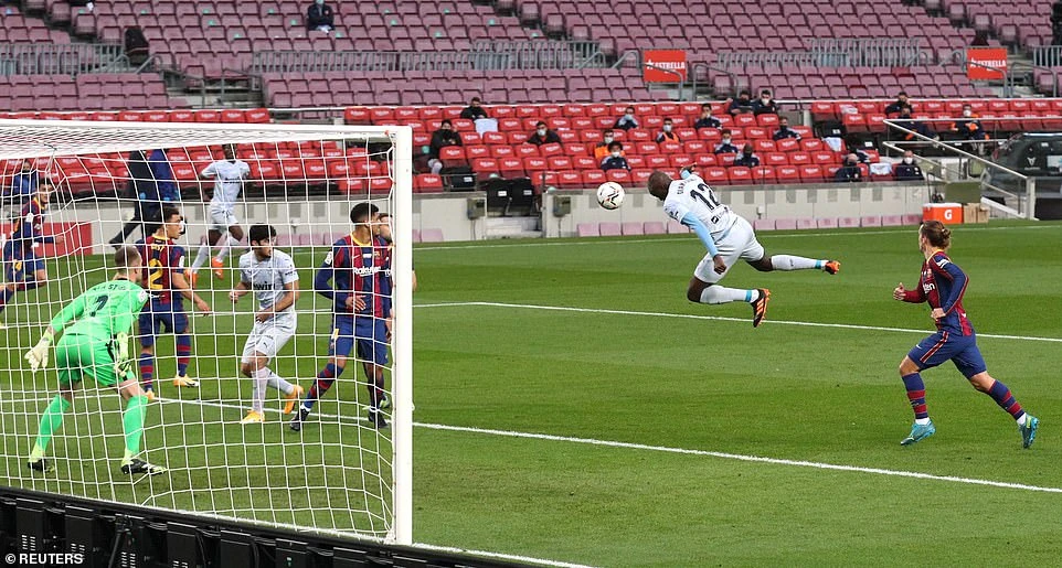 Diakhaby đánh đầu dũng mãnh mở điểm cho Valencia. ẢNH: REUTERS