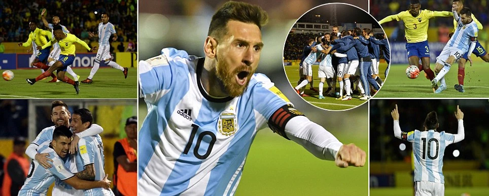 Khó khăn càng chồng chất với Argentina khi ngay ở phút đầu tiên, hàng thủ Argentina chơi như mơ ngủ để cầu thủ Ecuador phối hợp như chốn không người, Ibarra là người dứt điểm sau cùng mở tỉ số cho Ecuador. Nhận bàn thua sớm, lại rơi vào thế buộc phải thắng nhưng đúng lúc này, Messi lại xuất hiện như một người hùng giải cứu cả đất nước Argentina. Chỉ 11 phút sau, Messi đã giúp Argentina cân bằng cách biệt đồng thời sốc lại tinh thần đội nhà bằng pha phát động tấn công rồi tự mình dứt điểm cận thành trong vòng cấm.
