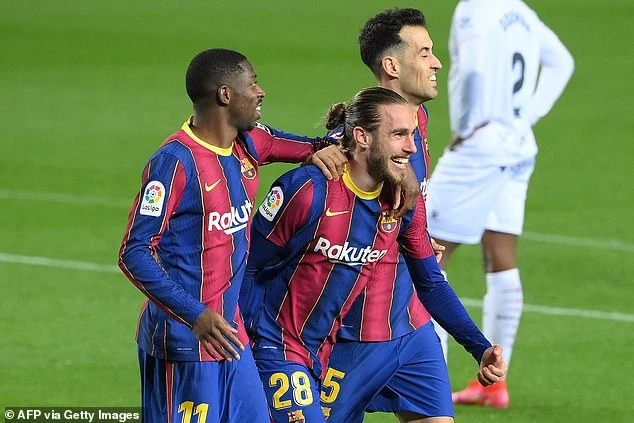 Khoảng cách an toàn cũng được Barca tái lập khi trung vệ Mingueza đánh đầu nâng tỷ số lên 3-1. Ảnh: Getty Images.
