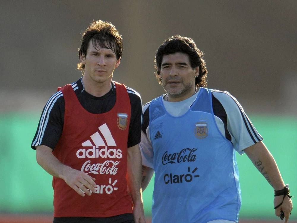 Messi với thần tượng đồng hương, cố danh thủ Maradona. Ảnh: CGI.