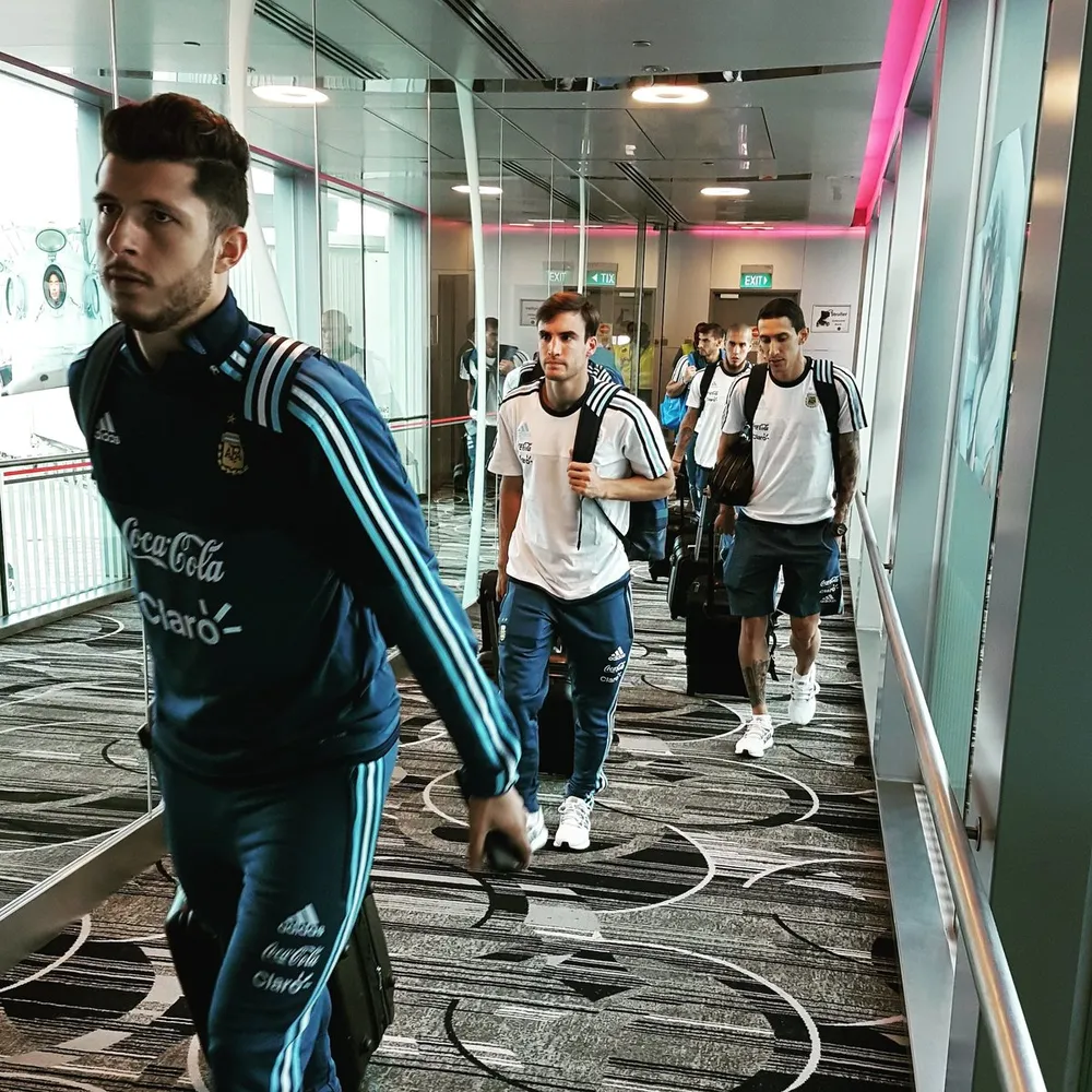 Hình ảnh tuyển Argentina tại sân bay Changi của Singapore