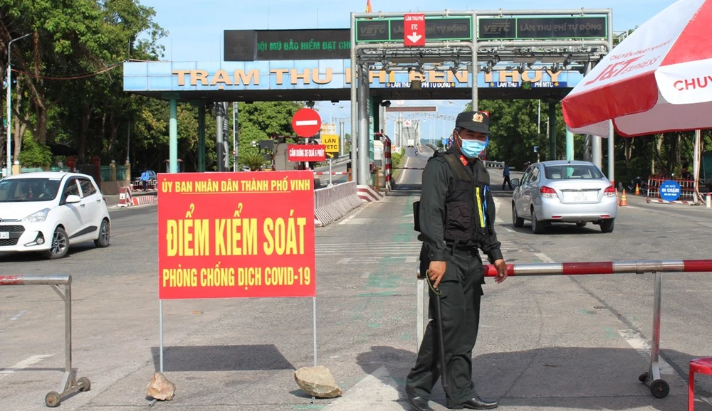 Sáng 6-7, TP Vinh (Nghệ An) đang duy trì các chốt kiểm soát trên quốc lộ 1A và các con đường lớn vào, ra thành phố. Người dân ra, vào TP Vinh ngoài khai báo y tế, đo nhiệt độ phải trình được giấy chứng nhận kết quả test nhanh kháng nguyên âm tính COVID-19 hoặc giấy chứng nhận xét nghiệm PCR âm tính. Giấy này chỉ có giá trị trong vòng 3 ngày kể từ ngày nhận được giấy kết quả xét nghiệm.