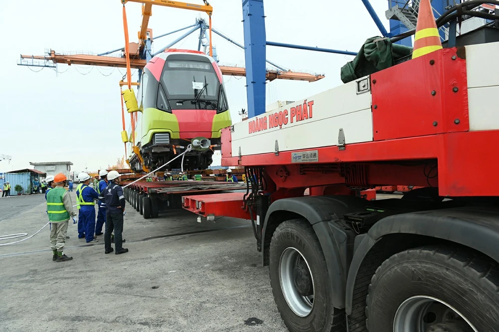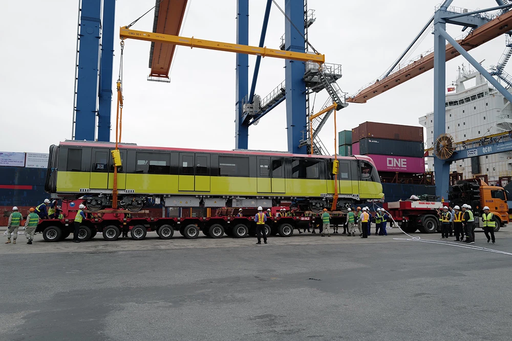 Đến 7 giờ 30 cùng ngày, các toa tàu được bốc dỡ xuống xe siêu trường, siêu trọng để vận chuyển về Hà Nội. Dự kiến, tối cùng ngày, các toa tầu đầu tiên sẽ được chở Depot Nhổn (Hà Nội), thực hiện lắp đặt lên ray để vận hành thử nghiệm trước khi vận hành chính thức.