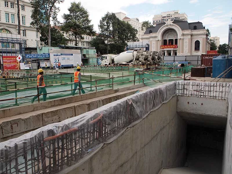 Tuyến metro số 1 vẫn đang được thi công. Ảnh: KIÊN CƯỜNG