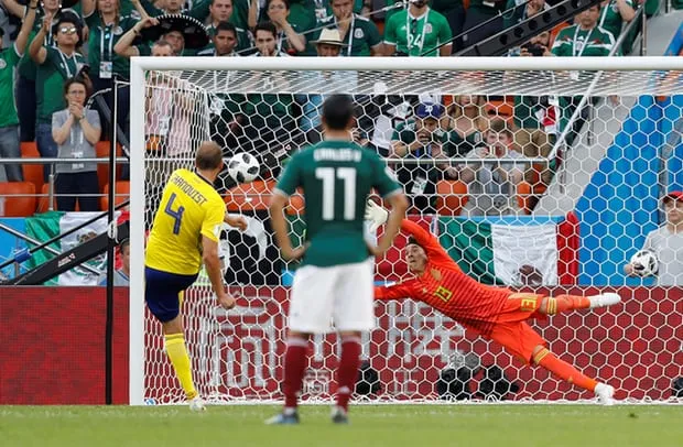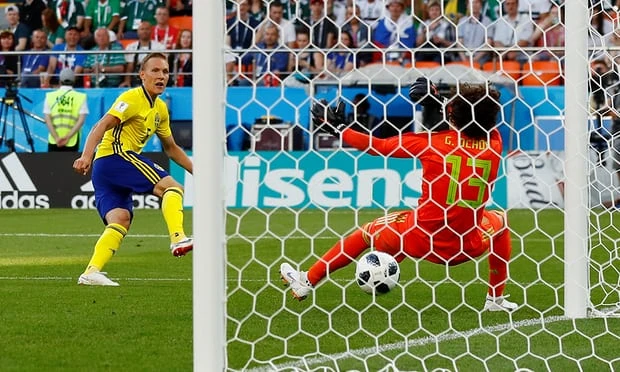 Bị Thụy Điển dẫn bàn, Mexico rơi vào thế vô cùng bất lợi, nhưng khi chưa tìm được phương án khoan thủng hệ thống phòng ngự của Thụy Điển, thì hậu vệ Moreno phạm lỗi với tiền đạo Marcus Burg trong vòng cấm để biếu không cho Thụy Điển quả phạt đền. Đứng trước cơ hội nhân đôi cách biệt trung vệ Granqvist ghi bàn nâng tỷ số lên 2-0 ở phút 62 giúp đại diện Bắc Âu nắm chắc chiếc vé vào vòng 16 đội.