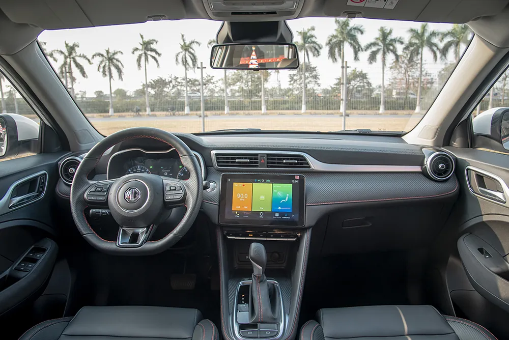 Thiết kế nội thất MG ZS mới cao cấp hơn nhờ tông màu đen cùng các vật liệu như bọc da PU, đường vân giả carbon,… kết hợp hài hòa với điểm nhấn là hàng ghế đầu được thiết kế kiểu dáng thể thao. Bên cạnh vô lăng đa chức năng với hệ thống Cruise Control, MG ZS còn sở hữu màn hình 10.1 inch thông minh, hỗ trợ kết nối cả Apple CarPlay và Android Auto. MG ZS Smart Up STD+ mới sở hữu khoang chứa đồ ấn tượng với dung tích 359L và tăng lên tới 1.166L khi hàng ghế sau được gập linh hoạt 60:40.