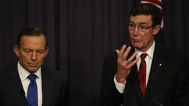 Thủ tướng Úc Tony Abbott (bìa trái) và Đại tướng Không quân Angus Houston