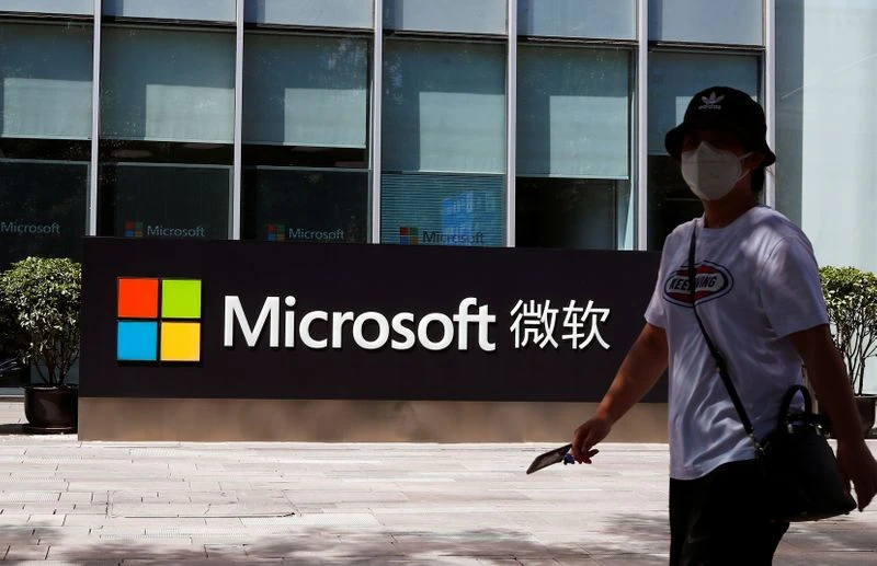 Một người phụ nữ đi ngang qua văn phòng Microsoft ở Bắc Kinh, Trung Quốc ngày 4-8. Ảnh: REUTERS