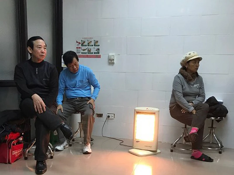 BV Bạch Mai (Hà Nội) dùng đèn sưởi ấm cho bệnh nhân đến khám. Ảnh: HÀ PHƯỢNG