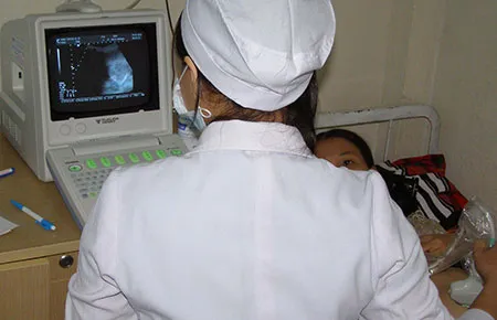 Nhân viên y tế đang theo dõi sức khỏe thai nhi của một sản phụ thuộc diện BHYT. (Ảnh chụp ngày 20-2) Ảnh: T.NGỌC