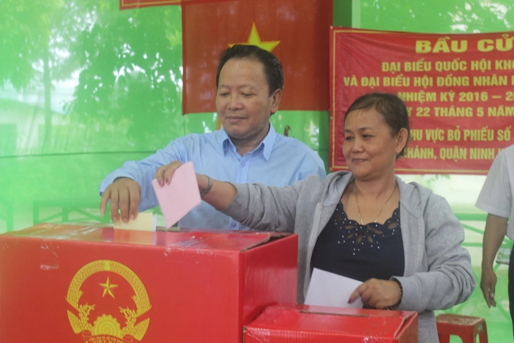 Tỉnh Sóc Trăng: Tại khu vực bỏ phiếu số 1 thuộc khóm 1, phường 2, TP Sóc Trăng, ông Nguyễn Văn Thể, Ủy viên Trung ương Đảng, Bí thư Tỉnh ủy Sóc Trăng, đã cùng cử tri trên địa bàn tham gia bỏ phiếu.