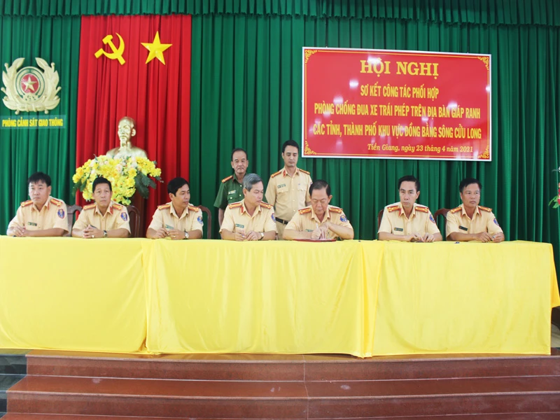 Ngày 23-4, Phòng CSGT Công an tỉnh Tiền Giang đã tổ chức Hội nghị sơ kết công tác phối hợp phòng chống đua xe trái phép trên địa bàn giáp ranh các tỉnh, thành phố khu vực ĐBSCL: Tiền Giang, Cần Thơ, Vĩnh Long, Đồng Tháp, Kiên Giang, An Giang, Hậu Giang, Cà Mau, Bạc Liêu, Sóc Trăng (từ ngày 15-9-2020 đến 14-3-2021).