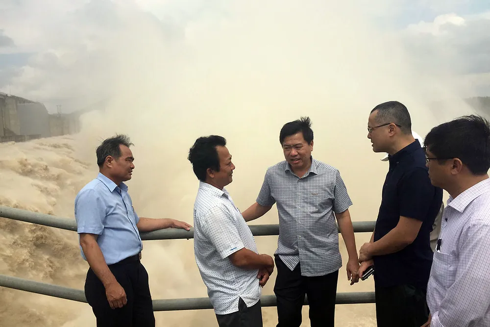 Lãnh đạo tỉnh Phú Yên kiểm tra xả lũ tại Nhà máy thủy điện Sông Ba Hạ sáng 11-11. Ảnh: AN BANG