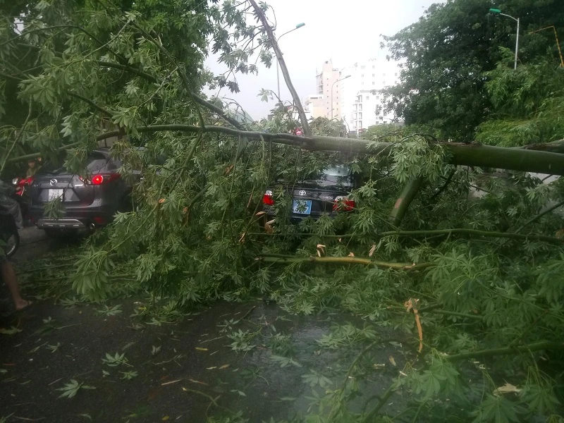 Vào khoảng 11 giờ sáng cùng ngày, xe biển xanh 75C-6767 (chưa rõ người điều khiển) khi lưu thông từ hướng đường Phạm Văn Đồng về đường Bà Triệu, đến đoạn chân cầu Vỹ Dạ thì bất ngờ bị cây xanh gãy đổ đè lên, rất may không có thương vong về người.