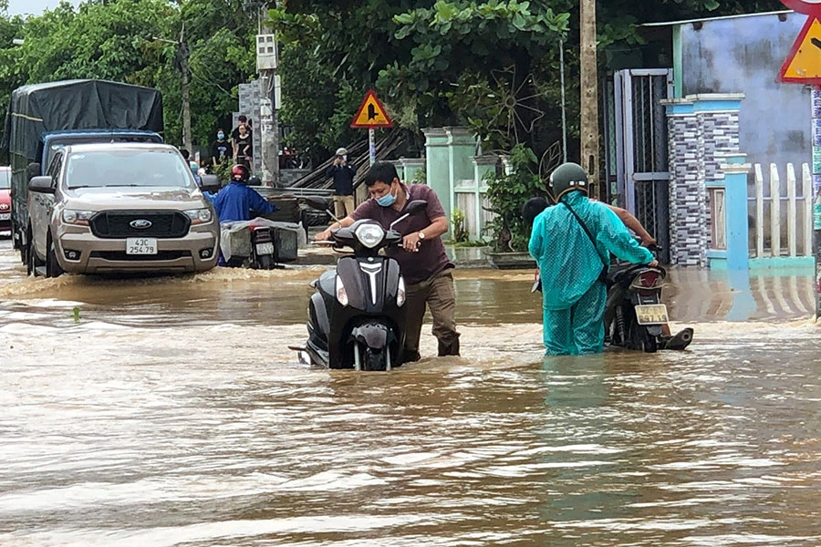 Ngày 17-10, các thủy điện ở Quảng Nam đồng loạt xả lũ, nước sông Vu Gia dâng lên nhanh khiến các tuyến đường, nhà dân trên địa bàn huyện Đại Lộc ngập sâu trong nước.
