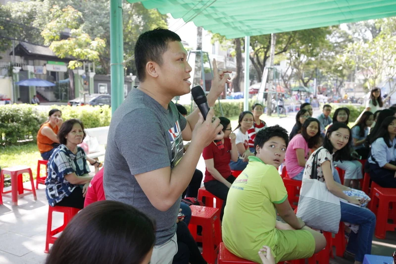 Ngày 11-12, tại Nhà Thiếu nhi TP.HCM đã diễn ra buổi trò chuyện chuyên đề “Hãy để con làm điều mình thích” với sự tham gia của bà Nguyễn Thúy Uyên Phương - sáng lập và điều hành hệ thống trường ngoại khóa Tomato Children’s Home và tác giả Hương Linh của bộ sách hướng nghiệp cho trẻ con Mình có thể làm nghề gì.