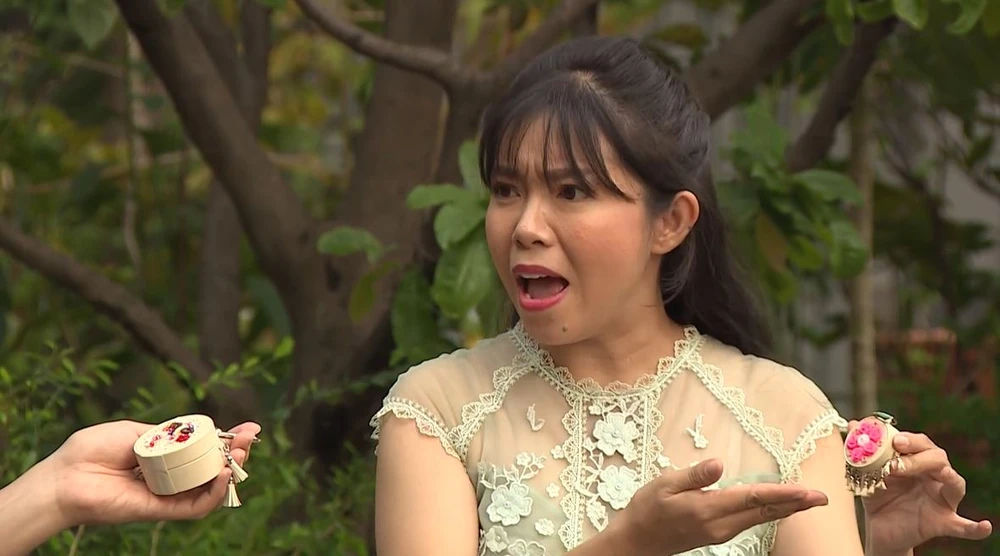 Thấy đàn chị mải mê chơi, không quan tâm gì tới mục đích chính, Minh Dự liền lên tiếng nhắc nhở: “Bữa nay em rủ chị đi làm chương trình Chuyện đó chuyện đây, chị không lo đọc nội dung để lát nữa gặp giao lưu khách mời mà chị đứng tìm hiểu về cái túi xách này làm gì?”.