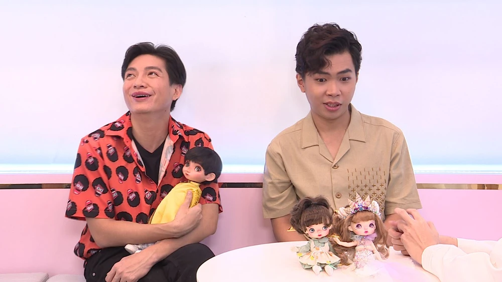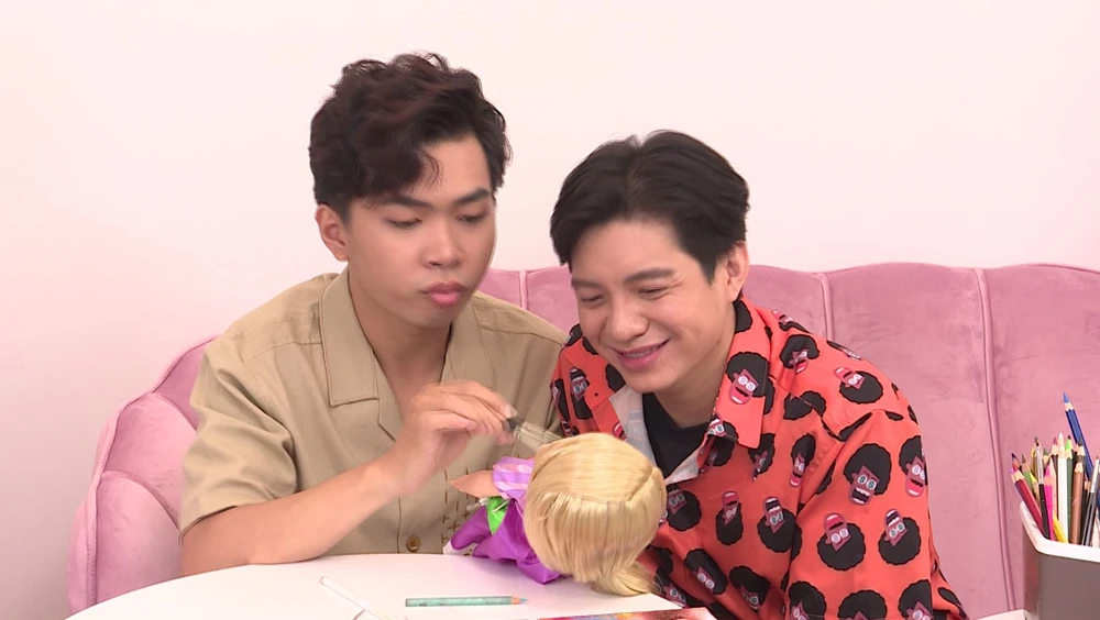 Trong lúc vẽ, Minh Dự và Hữu Đằng lại khiến khán giả khó hiểu khi ngồi dính sát bên nhau cùng vẽ cho búp bê.