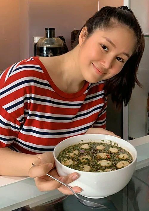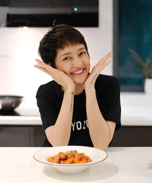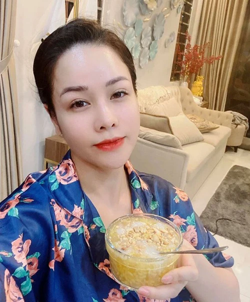 Nhật Kim Anh tự tay nấu chè bưởi tại nhà.