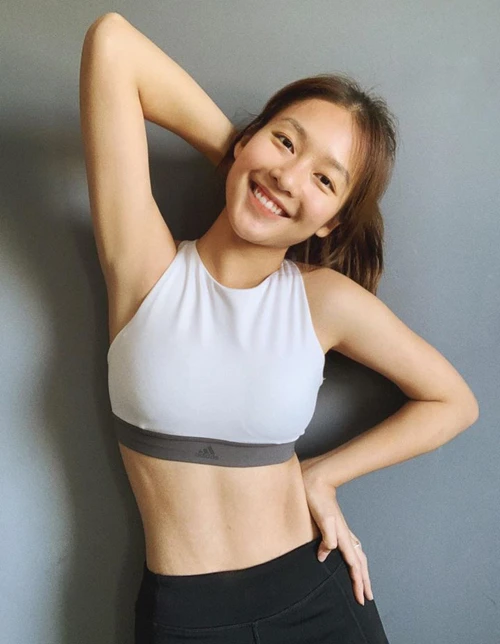 Khả Ngân chăm chỉ tự tập ở nhà để giữ eo.