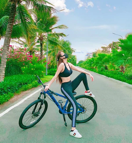 Quế Vân đạp xe giữ dáng trong những ngày dịch.