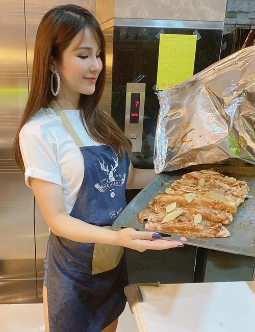 Diệp Lâm Anh tự làm món sườn nướng BBQ.