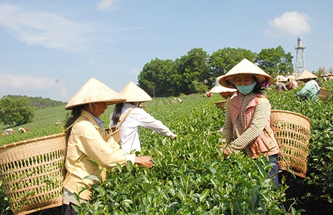 Thu hoạch chè tại huyện Di Linh, Lâm đồng. Ảnh: CD