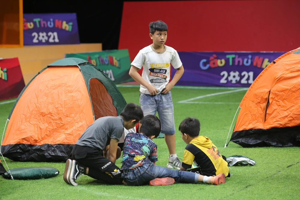 Sau khi hoàn thành thử thách giải mật thư để tìm ra những vật dụng cần thiết, cả hai đội cùng chia sẻ nhau thức ăn và mền gối. Đặc biệt, các cầu thủ nhí còn tổ chức trò chơi trốn tìm rất vui nhộn trên sân bóng của chương trình.
