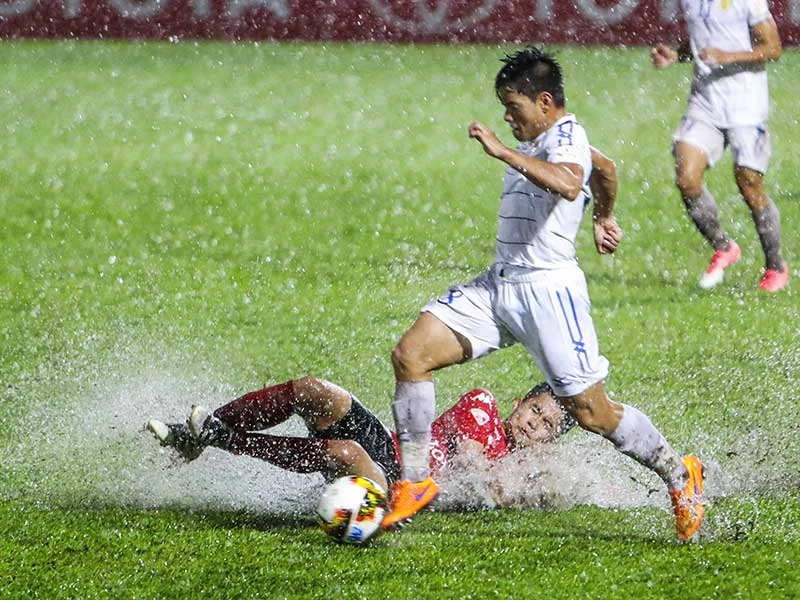 Long An đen đủi để thua TP.HCM trong cơn mưa tầm tã. Ảnh: HUY PHẠM