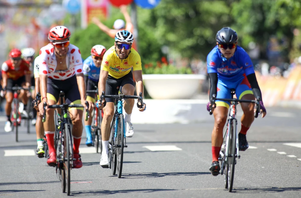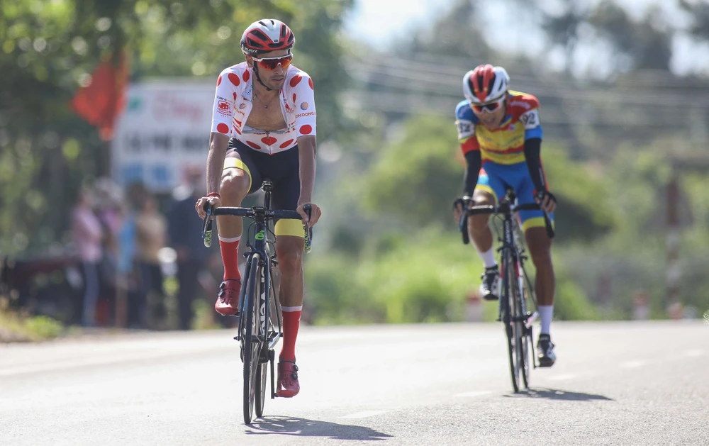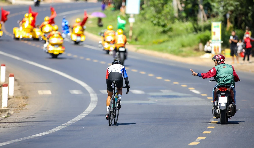 Tay đua Nguyễn Minh Thiện thực hiện pha sôlô cách mức đến 10 km.
