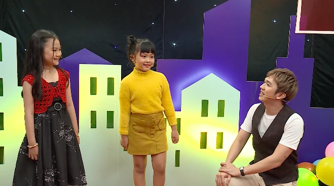 Bé Bảo Ngọc lớn hơn bé Hoàng Anh một tuổi nhưng cô bé khá nhút nhát, gương mặt buồn khiến MC Minh Xù thắc mắc.