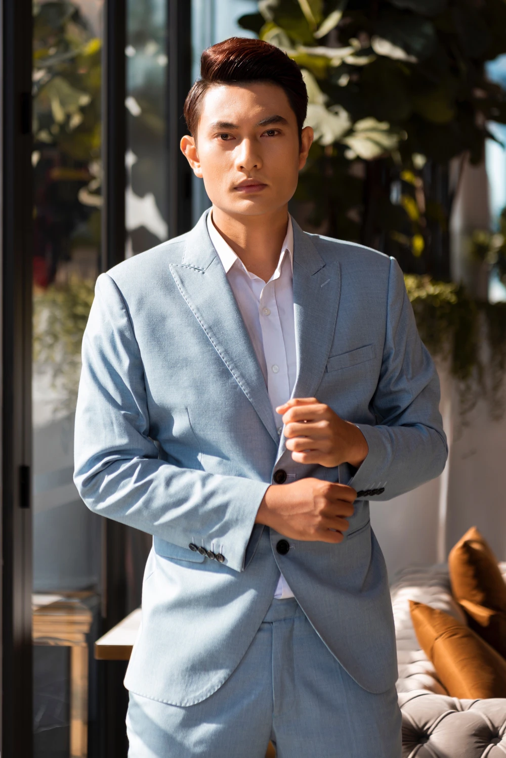 Xuất hiện tại buổi sơ khảo trực tiếp tại TP.HCM Mister Vietnam - Phạm Minh Quyền đã lựa chọn công thức mix & match an toàn, dư sức thu hút giới truyền thông khi diện outfit lịch lãm với thiết kế suit xanh thanh tao, cùng giày oxford tối màu tạo tổng thể trẻ trung.