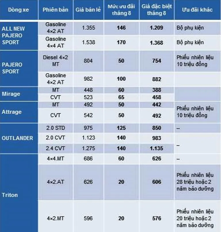 Bảng giá ưu đãi của Mitsubishi trong tháng 8-2017