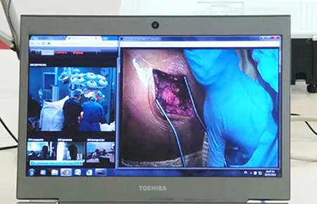 Cuối tháng 3-2014, một cụ bà 81 tuổi trượt chân bị gãy cổ xương đùi trái, phải mổ thay khớp háng nhân tạo tại BV Nhân dân 115. Điều đặc biệt là một nhóm người tại ĐH Bách khoa đã chứng kiến được ca mổ này nhờ Hệ thống hội chẩn y tế trực tuyến Bách khoa (hệ thống). Với hệ thống này, tại bất cứ nơi nào có kết nối Internet thì việc tham gia hội chẩn, quan sát trực tiếp quá trình phẫu thuật, xem hình ảnh chẩn đoán DICOM, nói chuyện với ê-kíp mổ… là chuyện trong tầm tay.