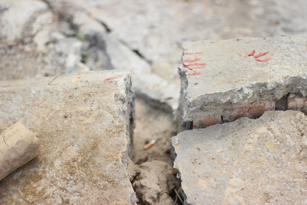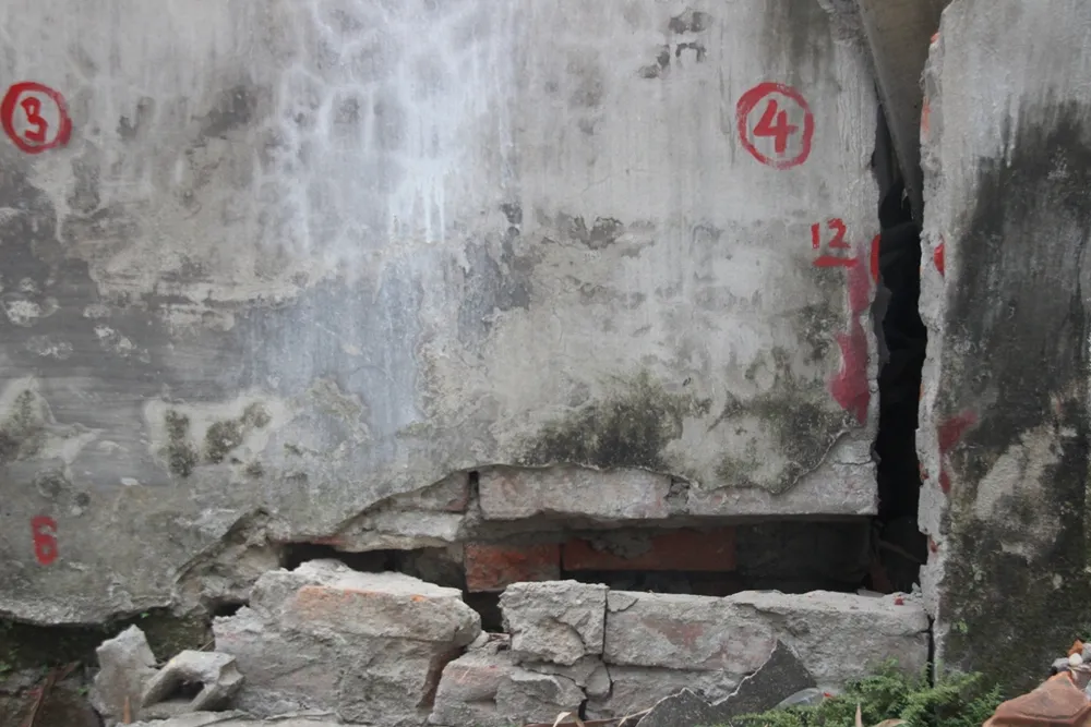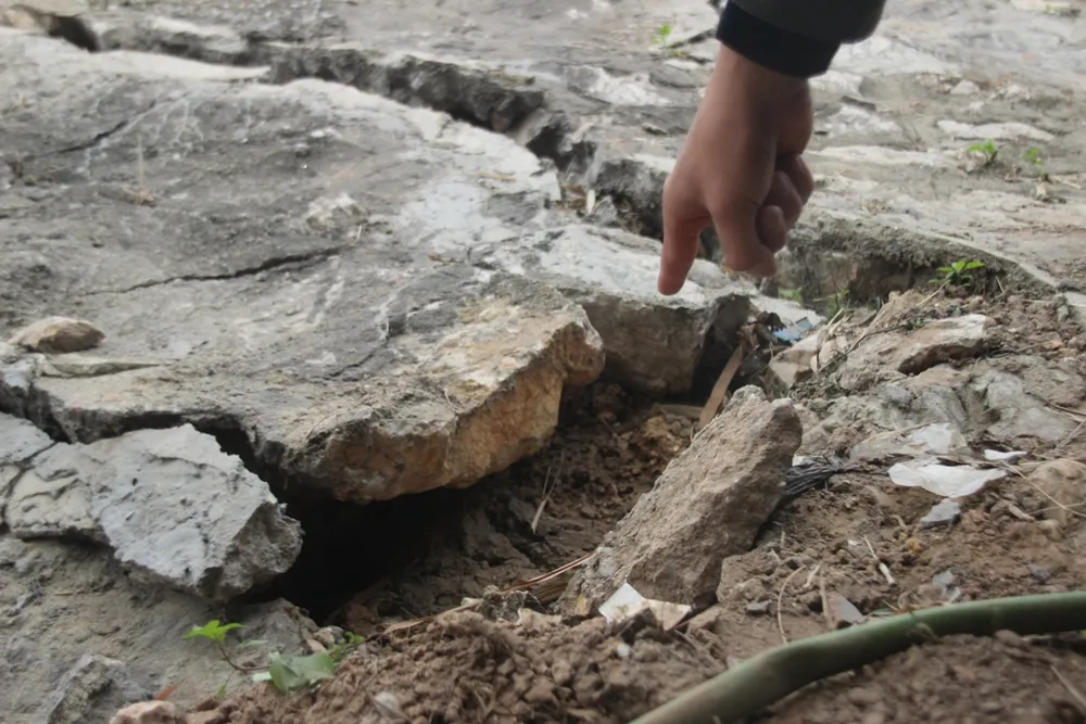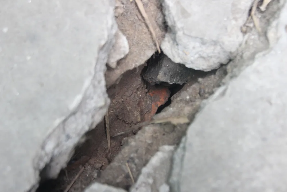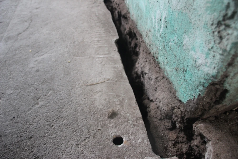 Nghiêm trọng hơn, vết nứt chạy tới cả phần móng nhà, tạo thành một khe rất lớn.