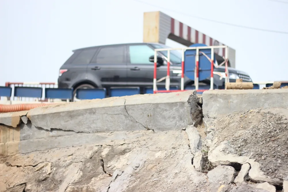 Tại một số vị trí khác, bề mặt trải bê tông bị sụt sâu xuống, tạo thành bậc thang.