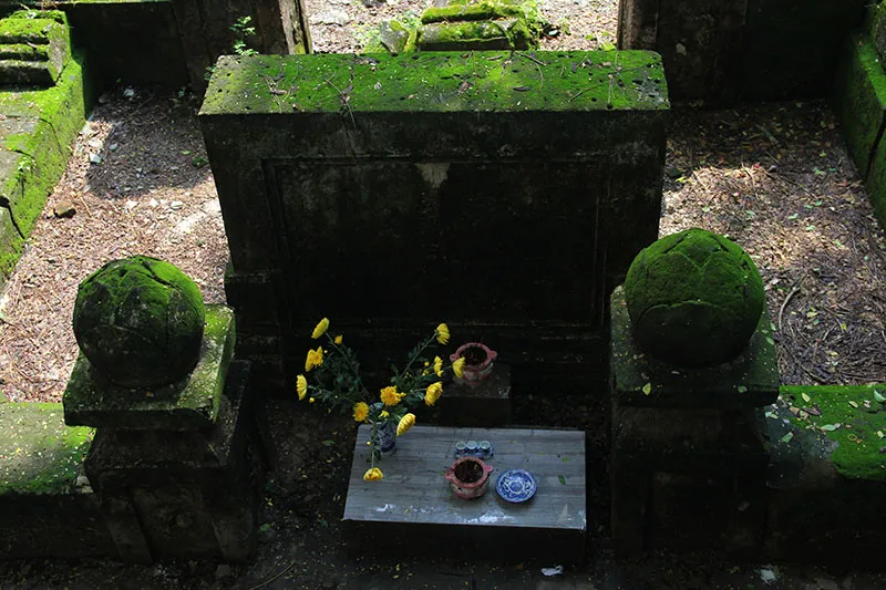 Bao quanh mộ là hệ thống tường thành kết hợp với các trụ biểu búp sen.