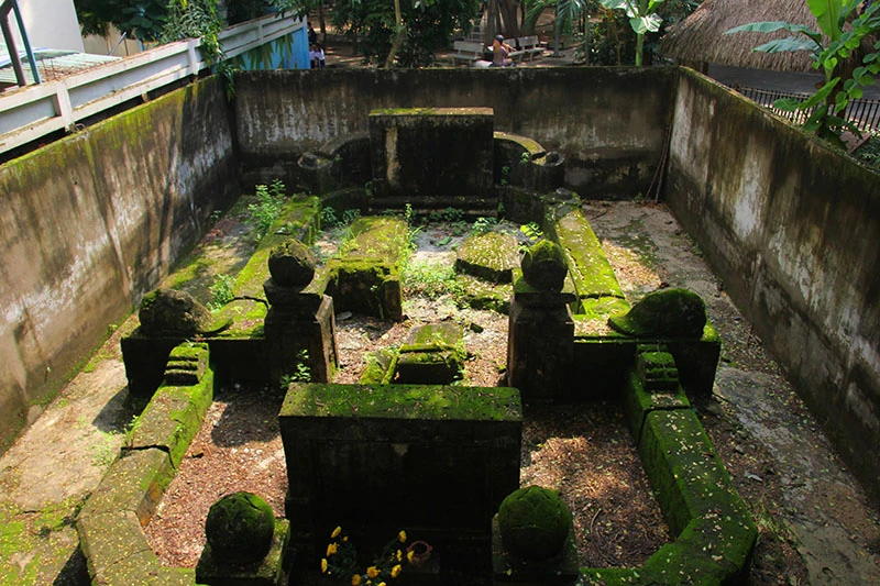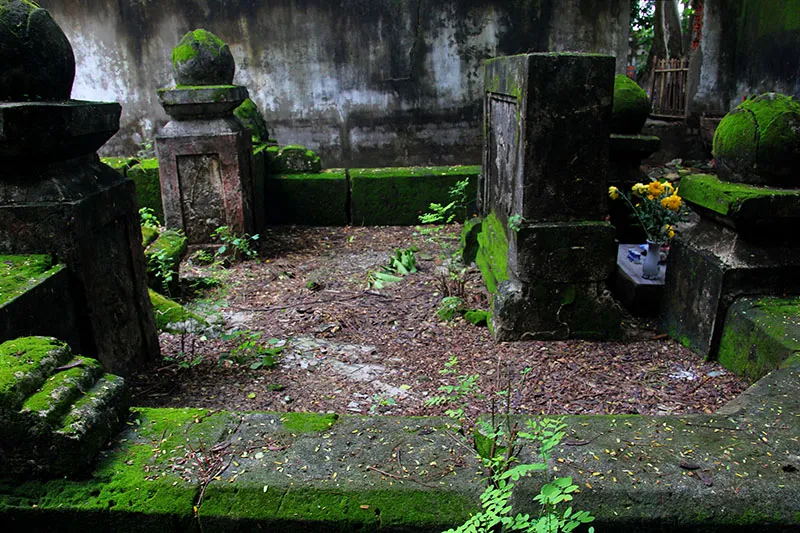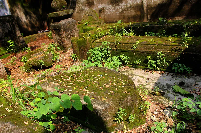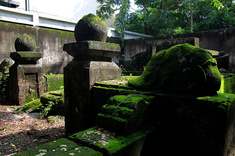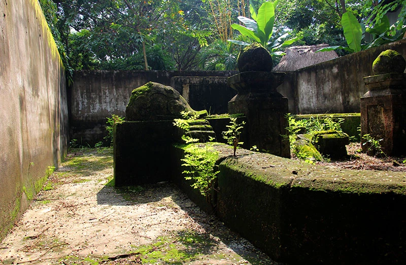 Những câu chuyện kỳ bí xung quanh khu mộ cổ trong khuôn viên Trường Tiểu học Giồng Ông Tố và tấm bia thất lạc đến nay vẫn chưa có lời giải thỏa đáng. Ảnh: Một bia thờ không rõ là của ai nằm ở một góc của khu mộ.