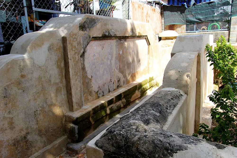 Dưới nền khu mộ còn lại những mảng đá tổ ong tồn tại hàng trăm năm nay.