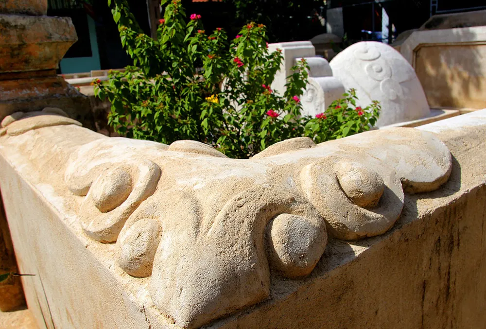 Hoa văn trên thành tường bao quanh mộ được giữ nguyên.