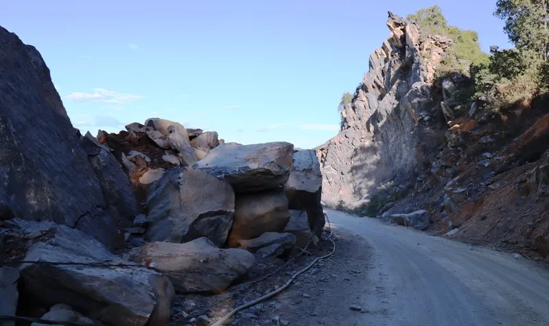 Mỏ đá gây mất an toàn cho người dân qua con đường lở xã Trù Sơn. Ảnh: Đ.LAM