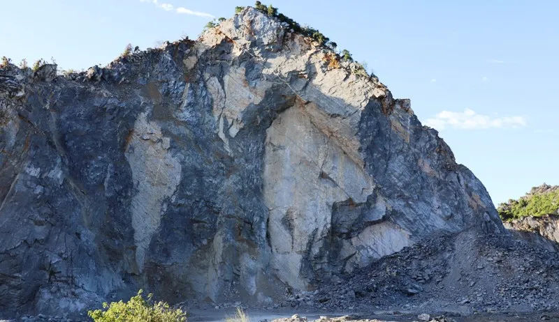 Thay vì bóc tách đá từ trên mỏ xuống, Công ty CP Vật liệu 99 cho khai thác đá theo kiểu khoét "hàm ếch". Ảnh: Đ.LAM