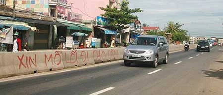 Người dân ven quốc lộ 1 “xin mở lối đi cho dân”. (Ảnh chụp trước ngày 18-1 và nay nơi này đã được mở) Ảnh: TT